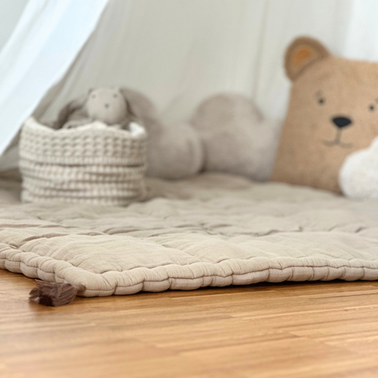 JETZT IM ANGEBOTKRABBELDECKE 120x120 BEIGE MUSSELIN - HANDGEFERTIGT